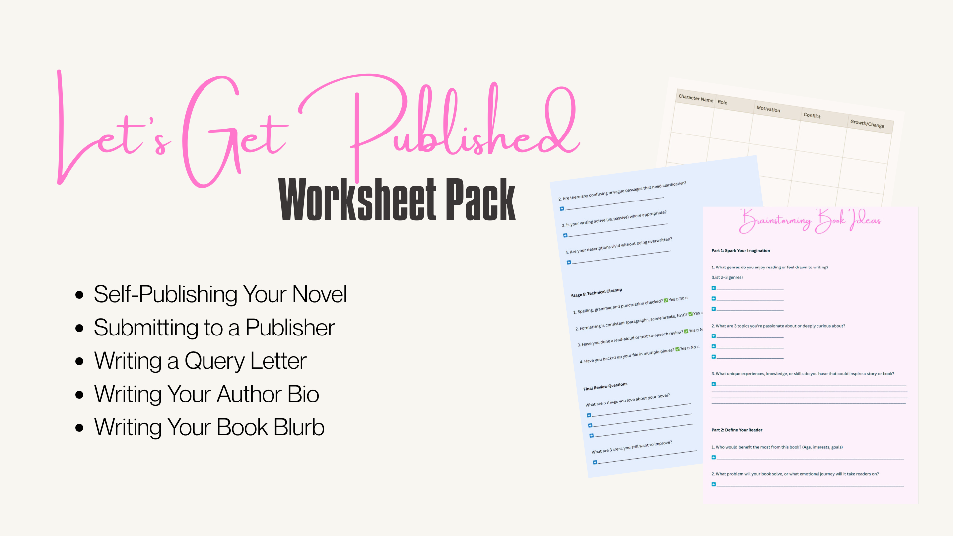 These printable worksheets will help you move from writer-wanna-be to book-in-progress in no time!